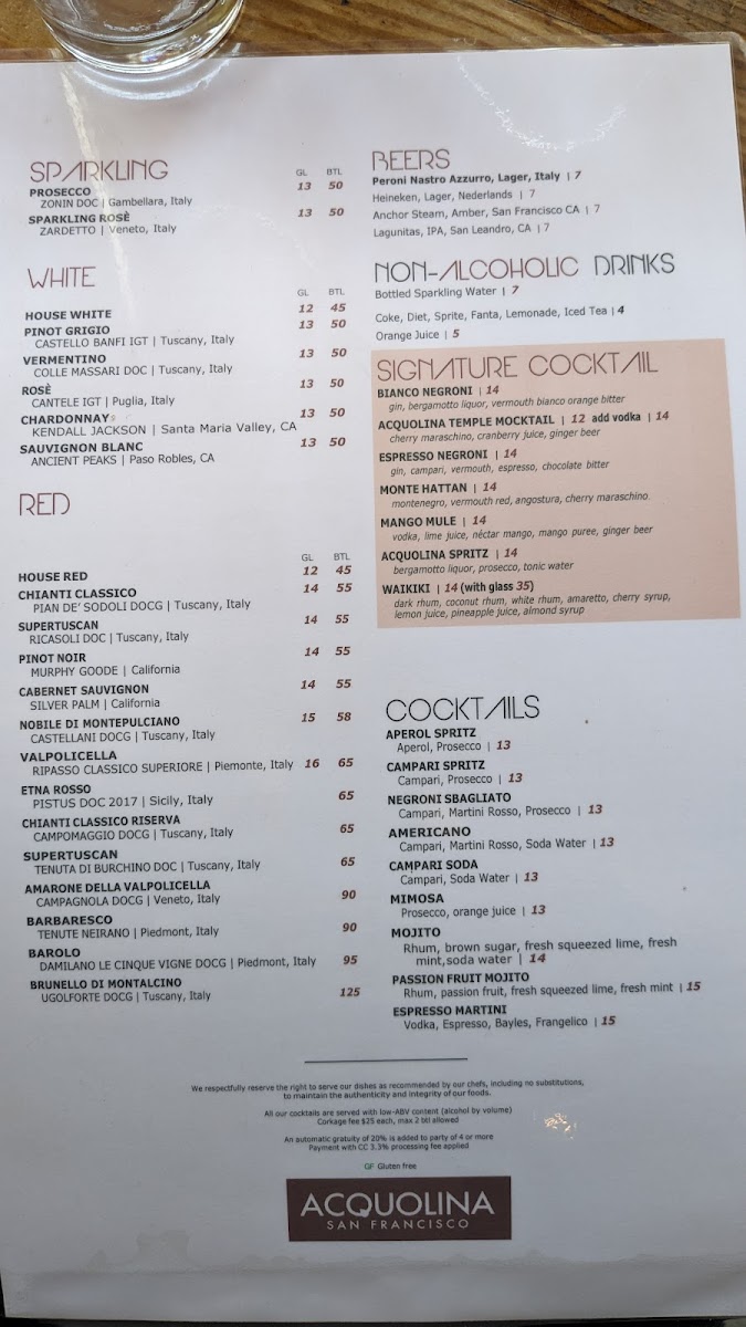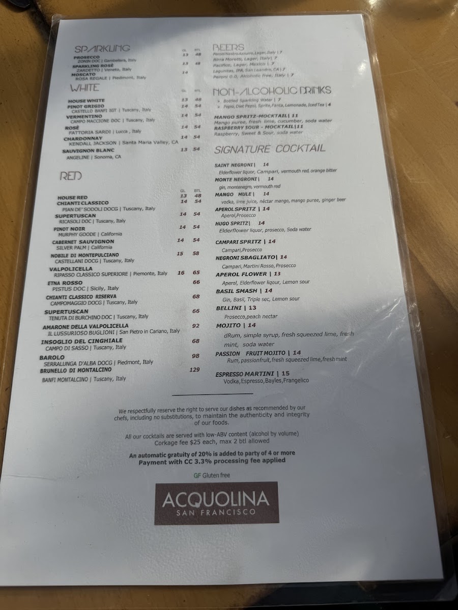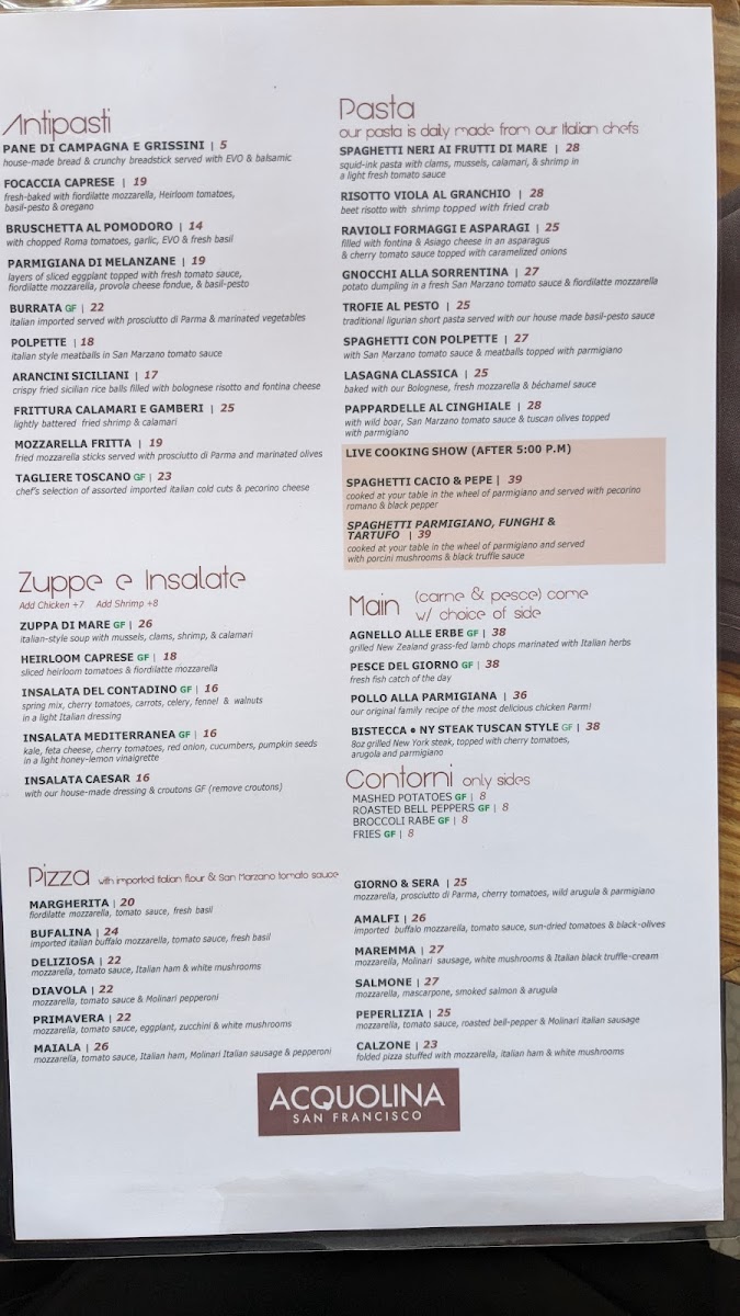 Welcome to Acquolina, an authentic Italian restaurant nestled in the vibrant heart of North Beach, San Francisco. Just a stone’s throw from the scenic Washington Square, Acquolina exudes the charming essence of “Little Italy,” making it a delightful destination for those craving exquisite Italian flavors.